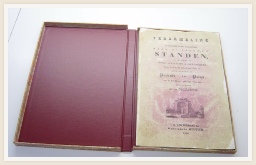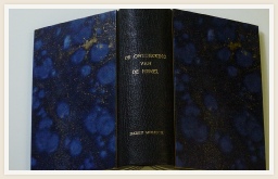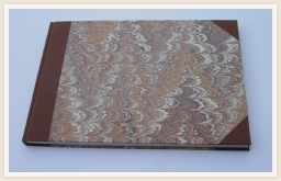 Band voorzien van hand gemarmerd papier en titel voorzien in goudfolie.